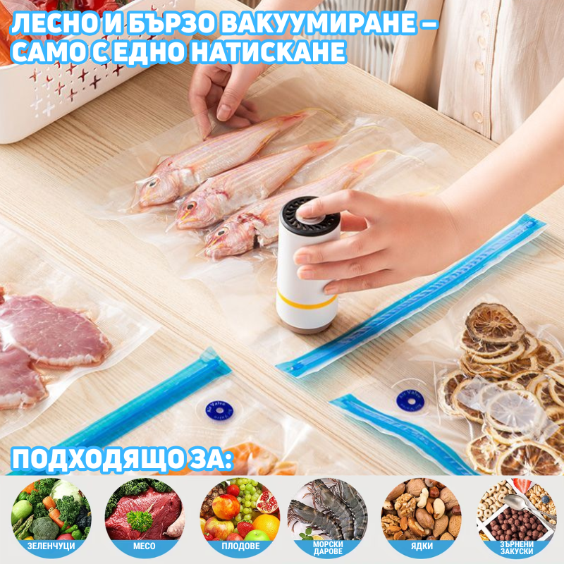 Компактният дизайн и USB портът ви позволяват да използвате устройството навсякъде – от кухненския плот до къмпинг в планината или при пътуване. Винаги под ръка за бързо запечатване.